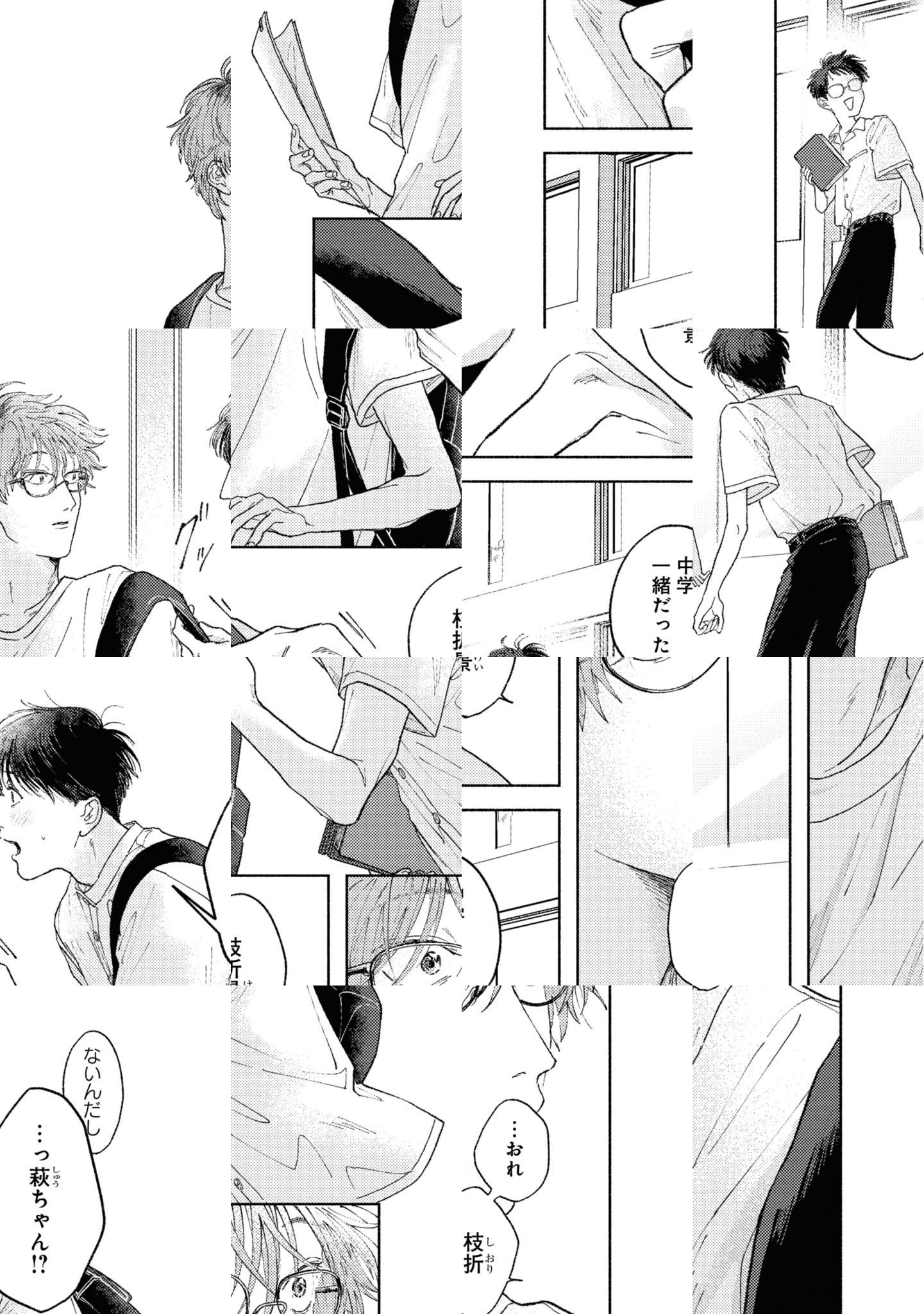 「試しに小説と同じこと、してみればいいんじゃねぇの?」 共通の趣味である「小説」をきっかけに仲良くなった、中学生の積川萩人と枝折景。 枝折が書いて、積川が読む――そんな心地の良い関係は、中学卒業を目前にして、簡単に壊れてしまった。 絶交して数年、偶然にも大学で再会した二人。 気まずい空気の中、積川は枝折から書きかけの原稿を無理やり手渡され、昔のような関係に戻りたいと懇願される。 しぶしぶ原稿を受け取る積川だったが、枝折が書いていたのは同性同士の、どこかリアリティのない恋愛小説で――。