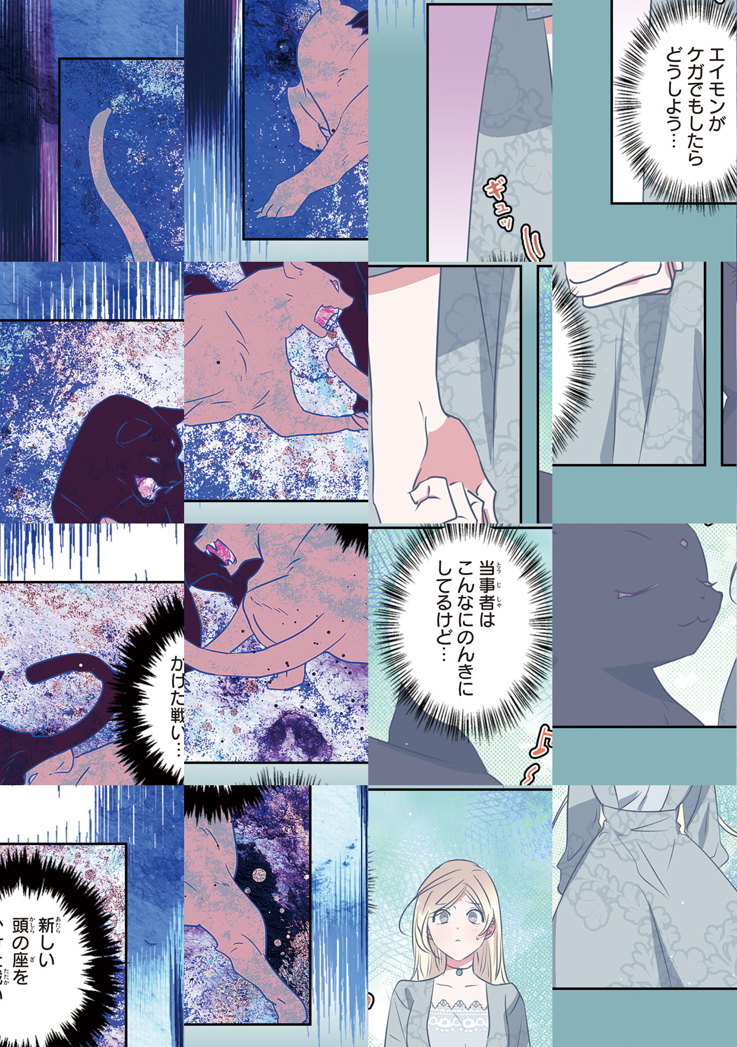 母に先立たれ、一緒に暮らしていたおじさんに売り飛ばされそうになるブロンディーナ。 自分自身を守るために母が唯一残してくれた大切な形見を売って、逃げるための資金を作ろうとするが、泥棒猫と疑われ捕まってしまう――! 死を覚悟した矢先、ブロンディーナの父親だと名乗るアテス帝国の皇帝が現れ、一夜にして、第一皇女として宮殿で暮らすことに! だが、父親からは冷たくあしらわれ、腹違いの姉弟からは嫌がらせを受け、宮殿の暮らしは楽しいものではなかった…。 そんな中、ケガをした黒猫と出会うが、その正体は誰もが恐れる神獣一族の黒豹で…!? 虐げられた皇女と神獣のもふキュンなラブファンタジー、開幕!