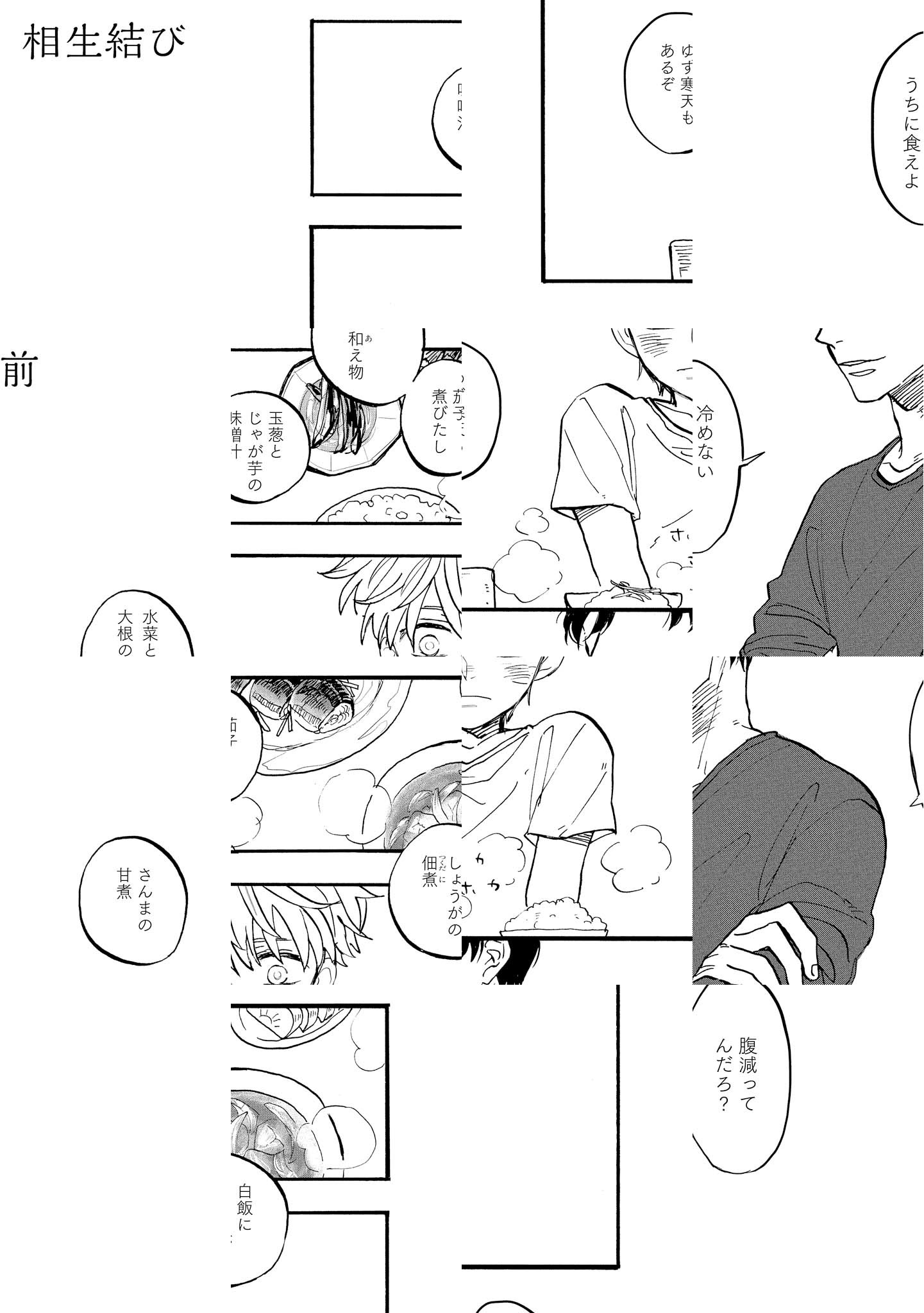 老舗小料理屋の若き主人とガテン系わんこ。 親代わりの真人(まこと)に仔犬のように懐く光太(こうた)。 大人になっても“まこさんの味はおかあさんの味!!”(満面の笑顔!)と誇らしげに語り、家族のように仲睦まじい二人… しかし、ある日訪ねてきた客・有匡(ありまさ)の存在が光太の胸に小さな棘となって刺さる。 親しげな雰囲気、自分には見せない少し照れた表情…真人の所作がいつもと違って見える…ぬぐえぬ嫌悪と不安が光太を苦しめて…。 あたたかくてなつかしい…時にぴりり、と心にしみるとっておきの恋。 どうぞご賞味ください。