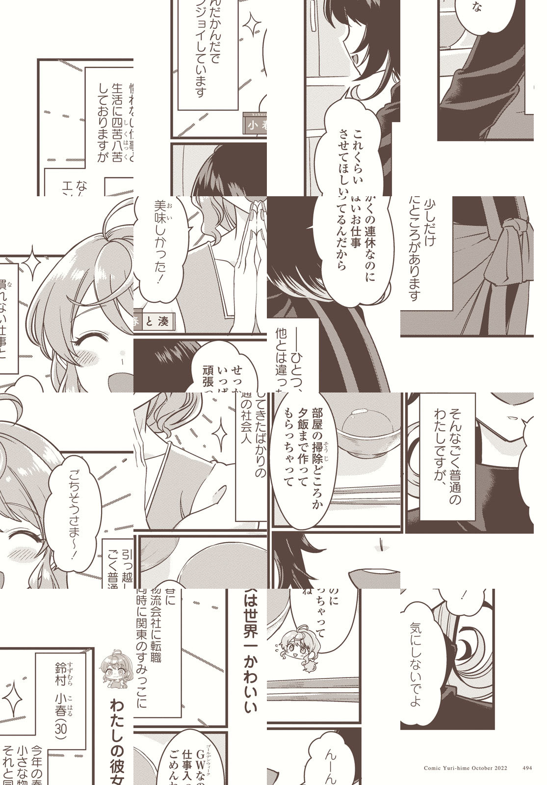 SNSで大注目の実在カップルによる甘々エッセイが百合姫でも連載スタート! 念願の同棲を始める遠距離カップルの小春と湊。 10歳差のふたりのいちゃいちゃライフは現代人の日々の疲れに効果絶大…!?