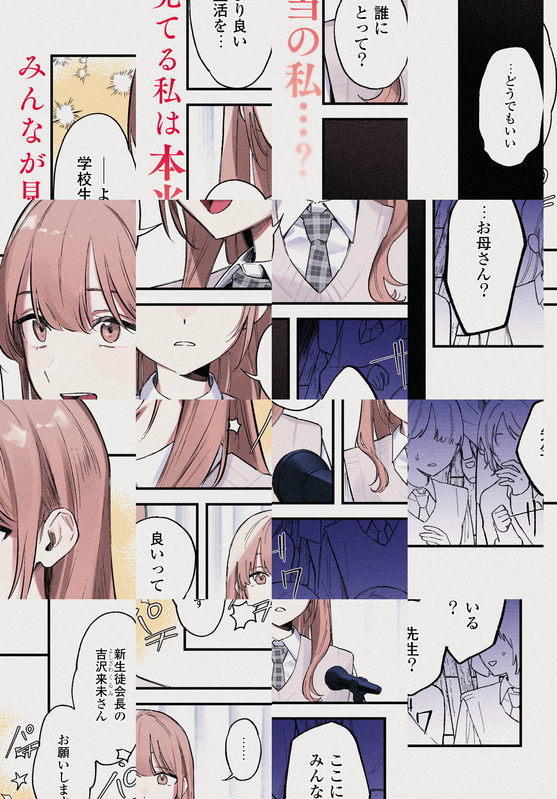 吉沢来未は生徒会長も務める優等生だが、母の束縛などのストレスで破滅的な願望を募らせていた。 ある日、教師の頼みで不登校気味なクラスメイト・直井と話をするが、上辺だけの言葉で話す吉沢を直井は蔑み、更には「ある動画」で脅してきた。その動画には、万引きをしようとする吉沢が映っていて…。 逃げ場のない毎日でもがく少女たちの、バイオレンス青春ストーリー。