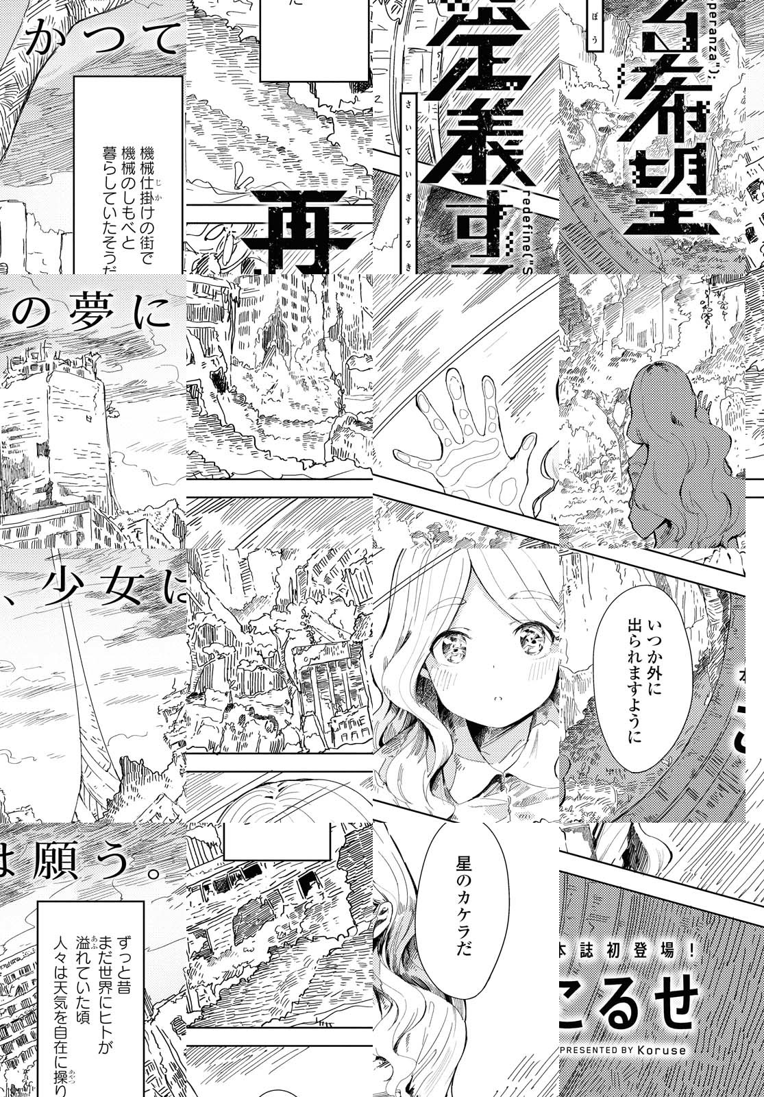 気象制御衛星の暴走、それに端を発する戦争で人類が滅亡してから数百年。 長いスリープから目覚めたアンドロイド・ラリベルタは、クローンの少女・スペランツァと出会う。 スペランツァは外気に耐性がないため、二人は窓越しに交流をしていき…。 終末を巡る、少女たちの想いを描いた連作集。