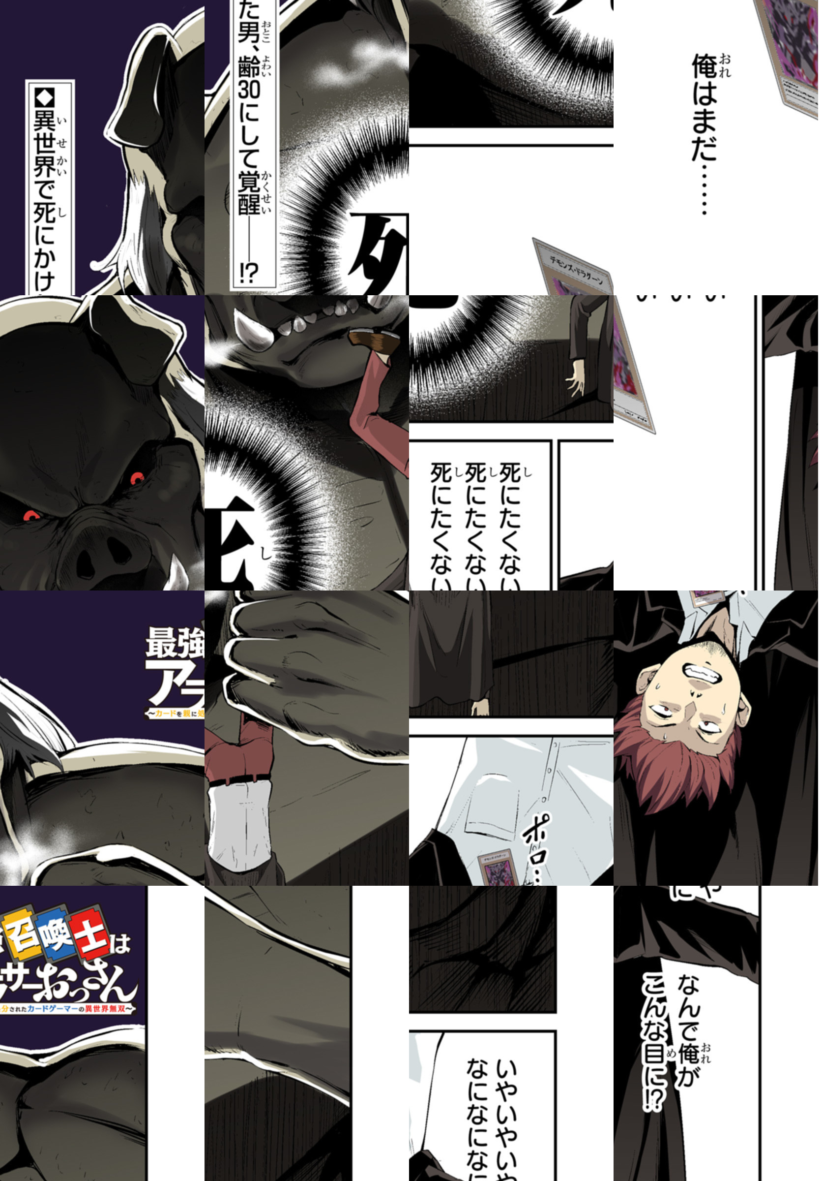 30歳になっても子供の頃から変わらないオタクライフを満喫するカードゲーマー・紙札創作。 オタク仲間が次々と人生のステージを進めて孤立する中、母親に大切なコレクションをすべて売り払われ、落ち込む間もなく異世界に飛ばされてしまう。 途方に暮れる創作だが、異世界転移によって魔物をカード化・召喚できる能力を手にしていた。 その能力で魔物に襲われた少女二人を助けたことで、おっさんカードゲーマーによる異世界攻略が幕を開ける――!!