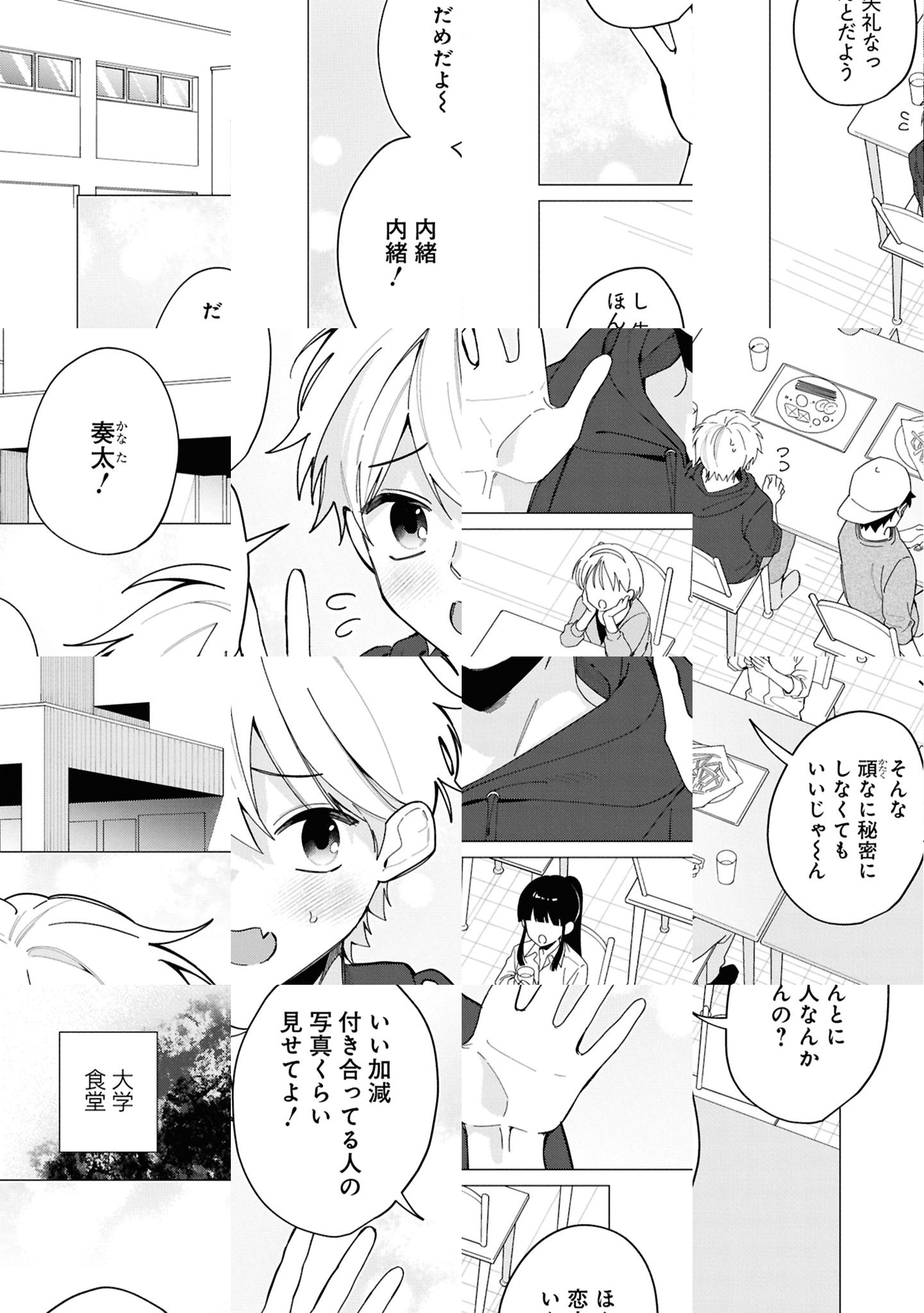 「彼氏が可愛すぎて/カッコよすぎて心配です…!」 大学生の久城奏太は、学内で高嶺の花と常に注目を浴びる、クールな美形男子・若月蓮と交際&同棲中! 幸せいっぱいなラブラブカップルの二人なのだが、唯一の問題は関係を公にするしないで意見が合わないこと…! 幼い頃から蓮を崇め溺愛している奏太は「自分とは不釣り合い」という理由で、交際について口外することを禁止している。 しかし、蓮は奏太の自分の魅力を自覚しない無防備な言動に日頃からハラハラさせられており、交際をバラすことを密かに画策中で――!?