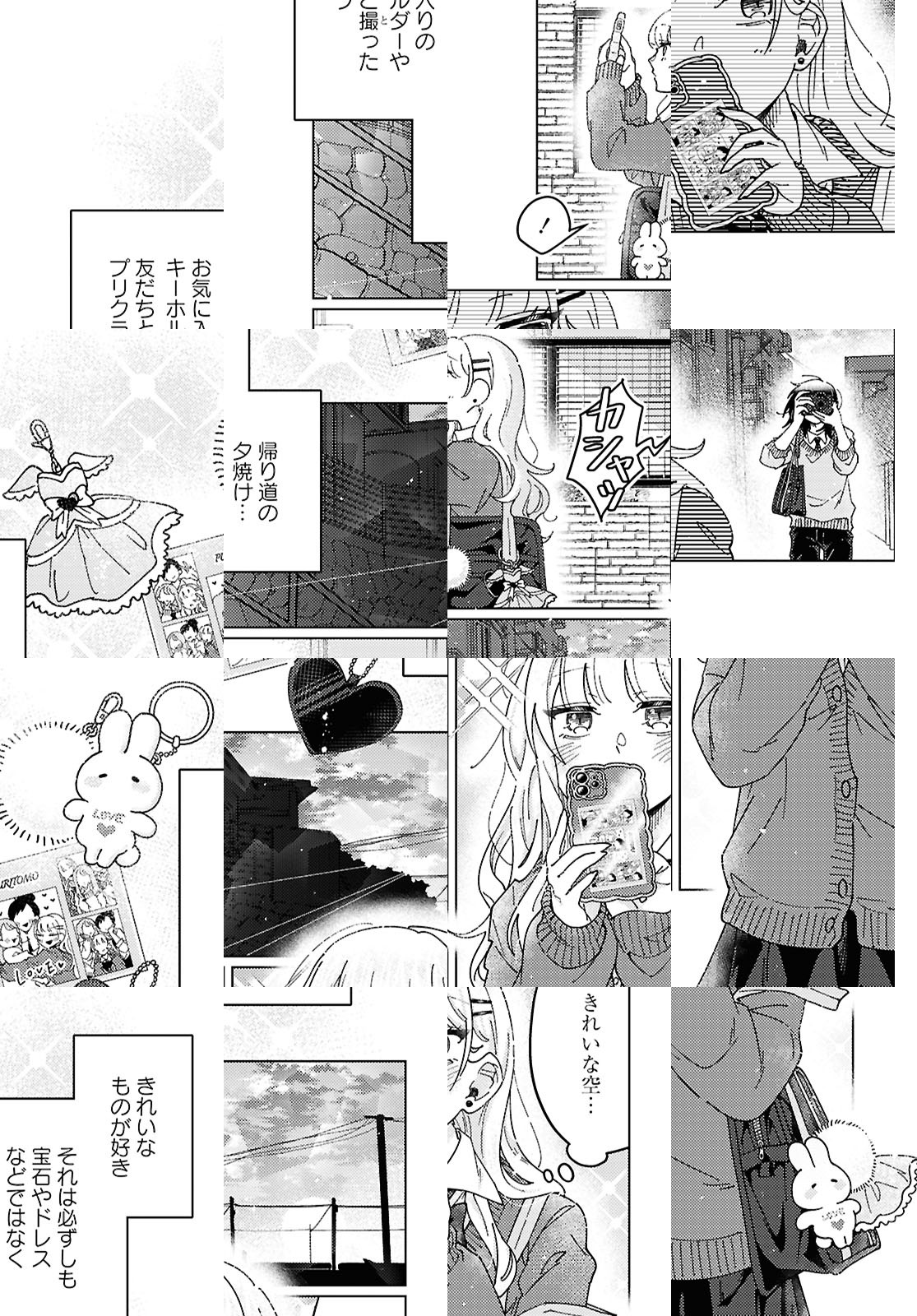 お気に入りのキーホルダー、友だちとのプリクラ、そして夕焼けの空。 自分の好きなものを大事にする黄金は、同じように夕焼けの写真を撮っていた同級生・青井に目を奪われる。ちょっとした好みが共通していたり、逆に自分にはないこだわりがあったりと、知れば知るほど黄金は青井に惹かれていき…。