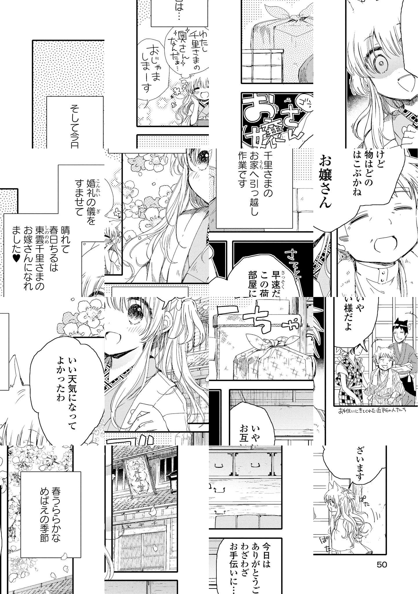 春日財閥の箱入り娘・ちるは女学校の卒業と同時に、幼いころ一度会ったきりの婚約者・千里の元へ嫁ぐことに。 顔も知らない女性との結婚に戸惑うことばかりの毎日ですが、使用人のカヨに尻を叩かれながら、少しずつお互いを知っていくのでした。前向き天然お嬢様と、気遣い屋さんの薬師の少女が織りなす、まったり新婚生活、始まります♪