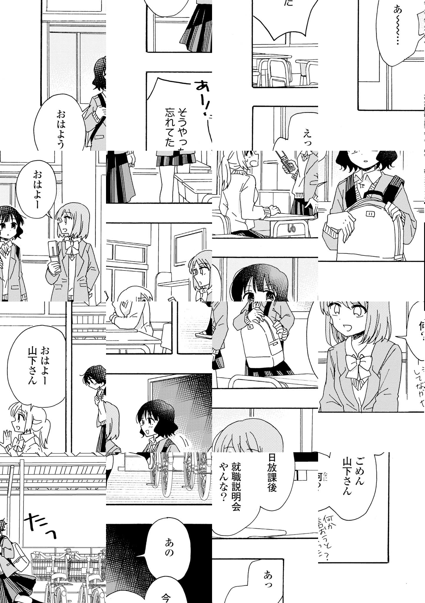 かわいい女の子が好きなフリーター・高橋(27歳)と、マイペースだけど繊細な漫画家・山下(27歳)。高校生活の終盤、就職も進学も志望しなかった二人は進路希望で居残りになって以来、一緒にいる。進学、就職、結婚…人生でたびたび遭遇する「フツー」に悩みながらも、なんだかんだ前向きに生きていく。女子二人。ゆるっと心に染みる、ちょうどいい関係。