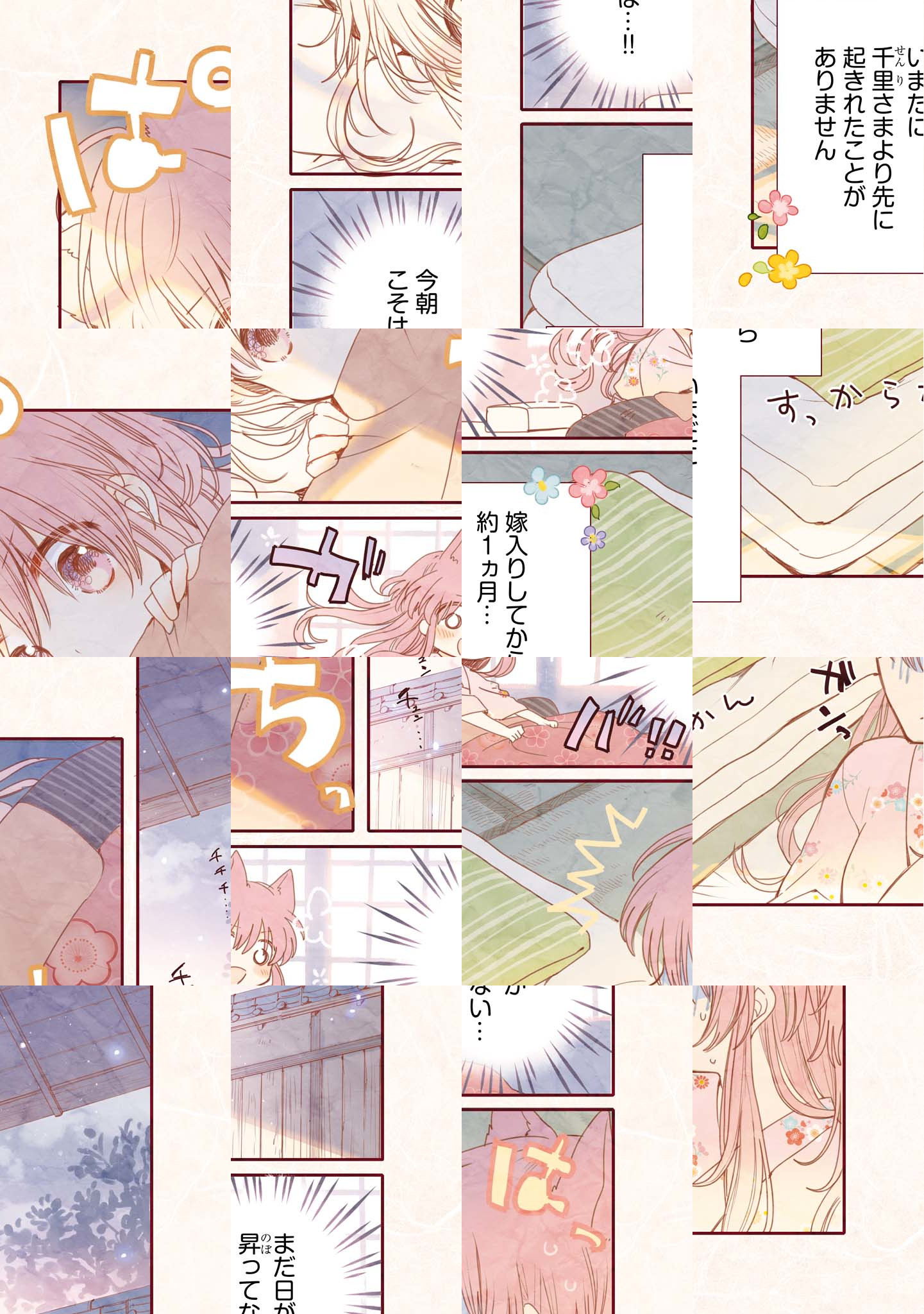 春日財閥の箱入り娘・ちるは女学校の卒業と同時に、幼いころ一度会ったきりの婚約者・千里の元へ嫁ぐことに。 顔も知らない女性との結婚に戸惑うことばかりの毎日ですが、使用人のカヨに尻を叩かれながら、少しずつお互いを知っていくのでした。前向き天然お嬢様と、気遣い屋さんの薬師の少女が織りなす、まったり新婚生活、始まります♪