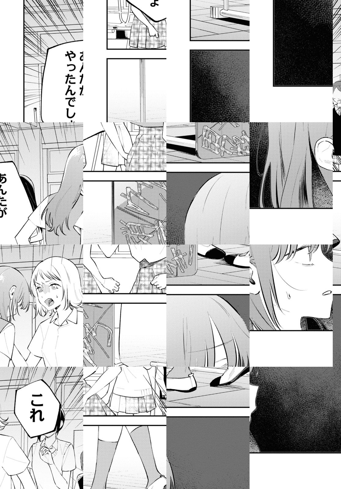 吉沢来未は生徒会長も務める優等生だが、母の束縛などのストレスで破滅的な願望を募らせていた。 ある日、教師の頼みで不登校気味なクラスメイト・直井と話をするが、上辺だけの言葉で話す吉沢を直井は蔑み、更には「ある動画」で脅してきた。その動画には、万引きをしようとする吉沢が映っていて…。 逃げ場のない毎日でもがく少女たちの、バイオレンス青春ストーリー。