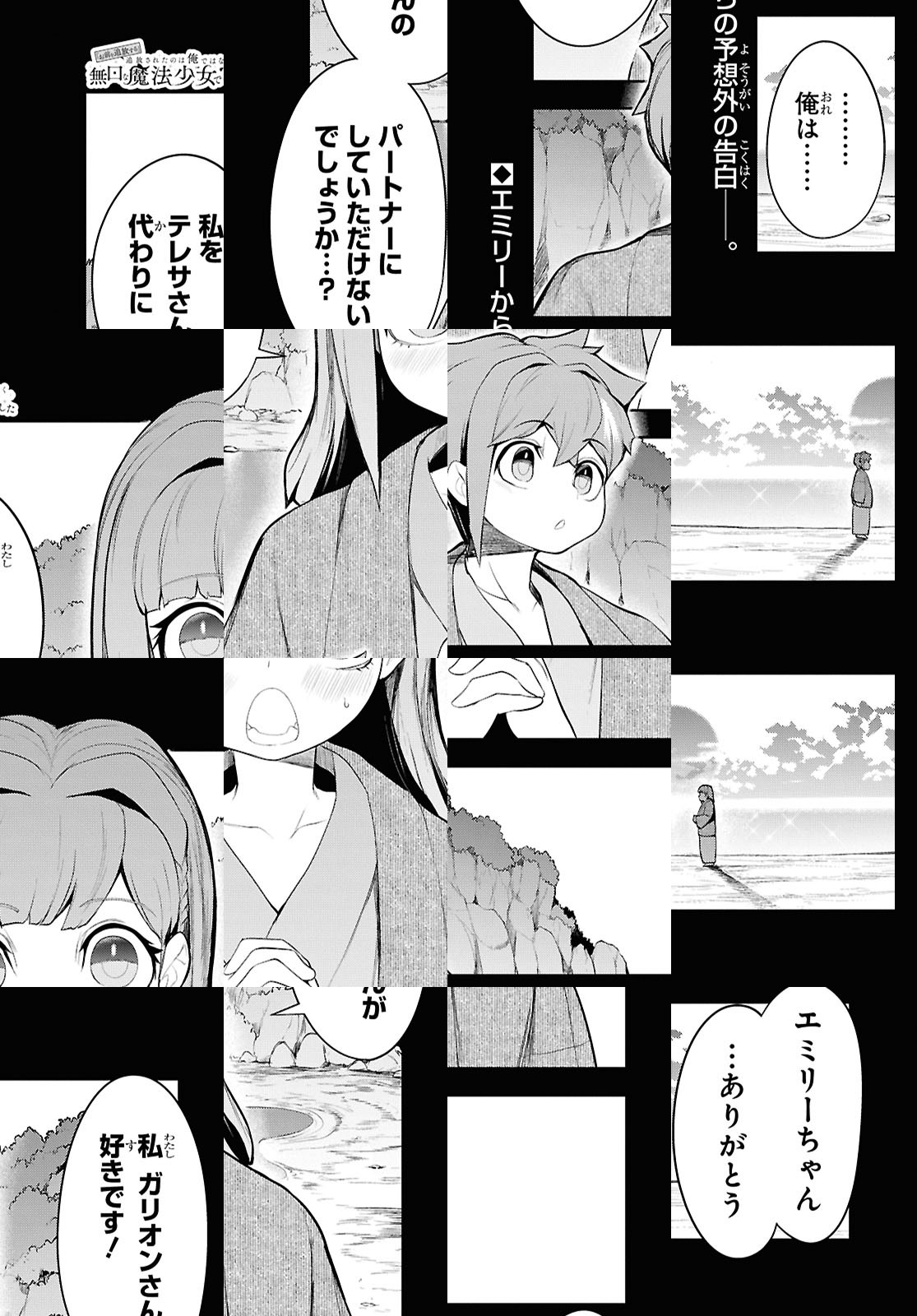 虐げられた 最強Sランク美少女を拾って成り上がる!! 「お前を追放する!」 新米ソロ冒険者・ガリオンが出会ったのは、 Sランク冒険者パーティ『栄光の剣』を追放された無口な魔法使いの少女・テレサ。 落ち込む彼女を慰め、パーティを結成、冒険の日々を共にすることに。 そんな中、落ち目になった『栄光の剣』はテレサを陥れる計画を画策。 ガリオンは彼女の穏やかな冒険ライフを守るため、下剋上を決意する――!! かわいくてちょっとドジな魔法少女との日常が紡ぐ、 笑いあり、LOVEあり(⁉)の成り上がり冒険譚開幕!!