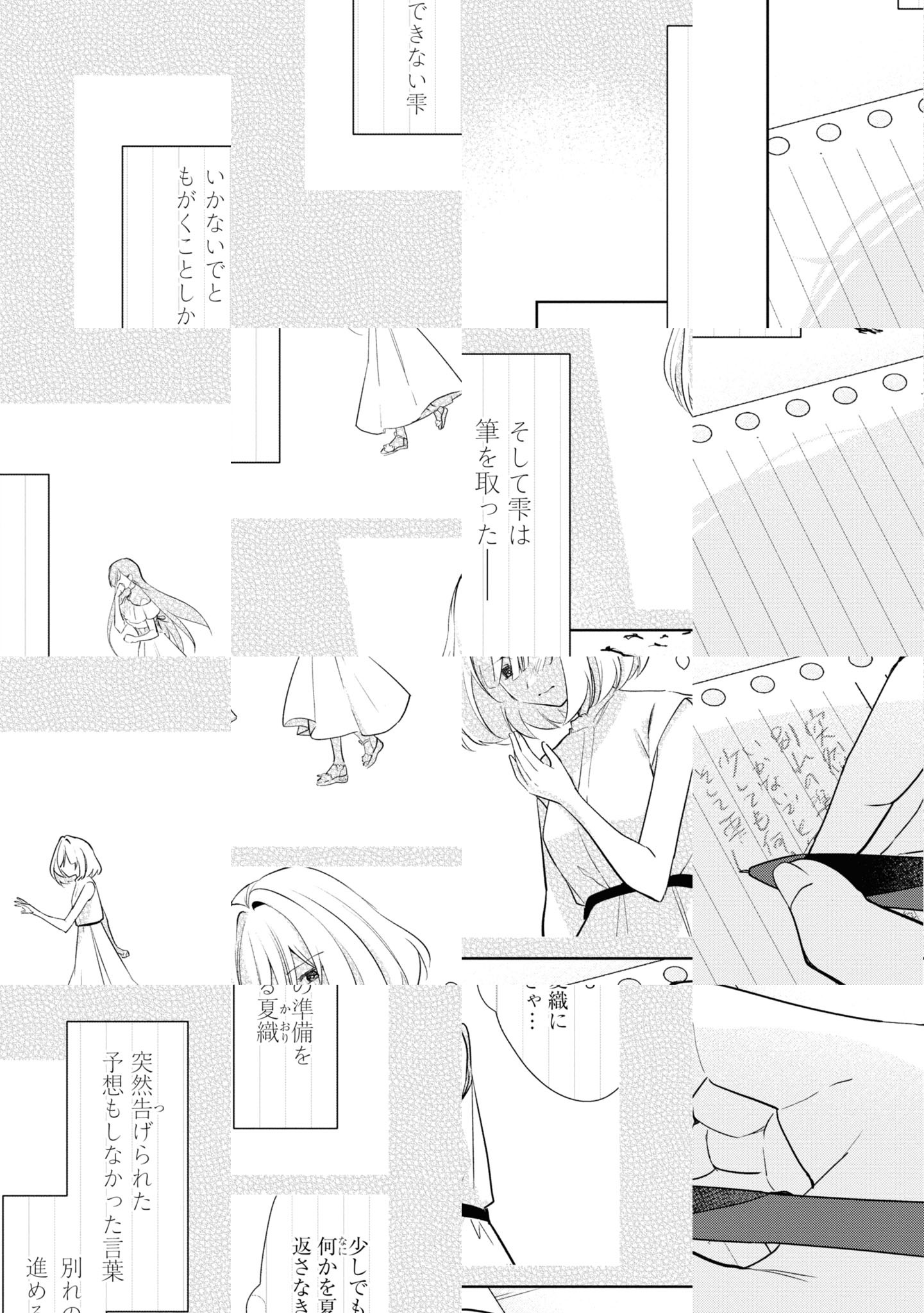 人との接点を避けて生きている女子高生・星川雫は、隠して執筆していた小説をクラスメイトの朝香夏織に見られてしまう。しかし、小説を読んだ夏織からは「次回作のために私と付き合おうよ」と逆に誘われてしまい……。物語を通してつながる少女二人の、甘く切ないひと夏だけの恋人ごっこ。