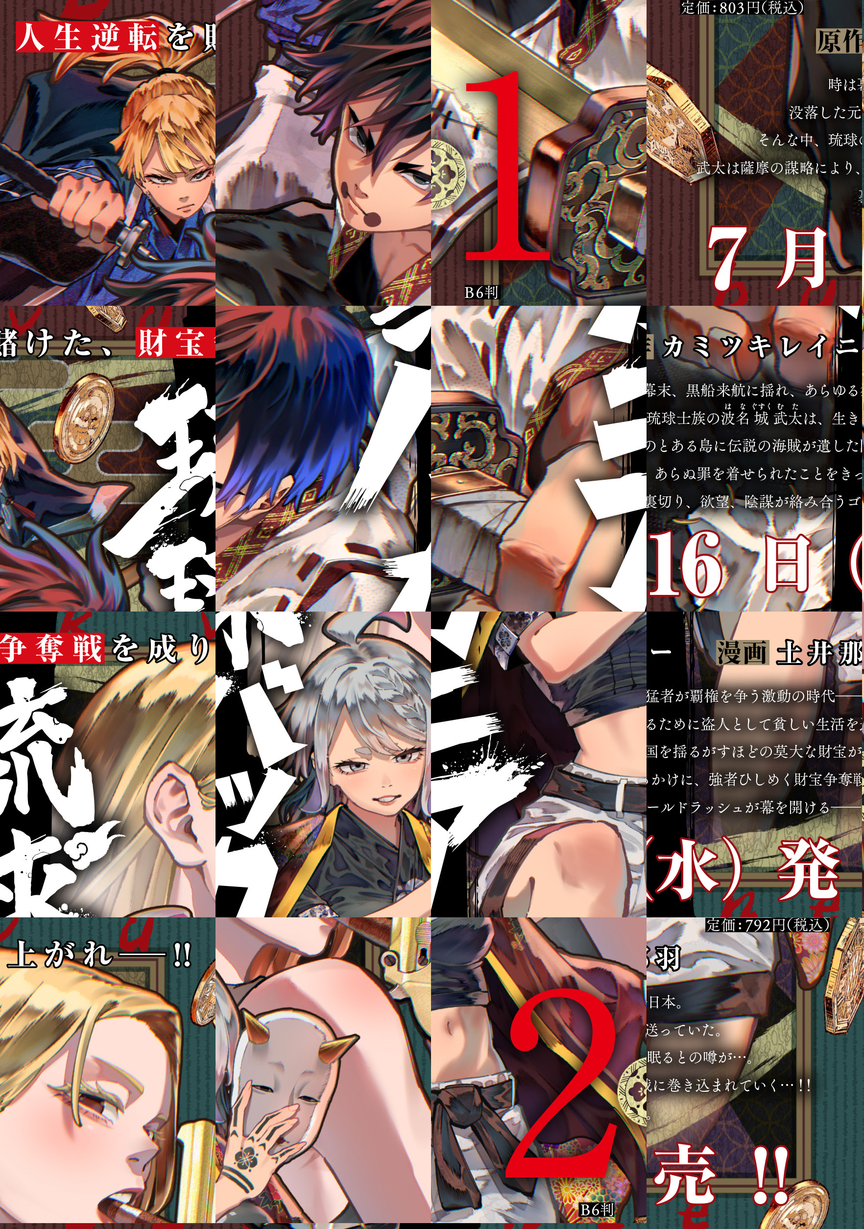 時は幕末、黒船来航に揺れ、あらゆる猛者が覇権を争う激動の時代――日本。 没落した元琉球士族の玻名城武太は、那覇で病気の母親を支えながら、 生きるために盗人として貧しい生活を送っていた。 そんな中、日本のとある島に伝説の海賊が遺した国を 揺るがすほどの莫大な財宝が眠るとの噂が…。 武太は薩摩の謀略によりあらぬ罪を着せられたことをきっかけに、 強者ひしめく財宝争奪戦に巻き込まれることに…!! すべてを失った青年が天命に贖い、己の怒りの刃で新たな運命を斬り開く――!! 裏切り、欲望、陰謀が絡み合う人生一発逆転を賭けた ゴールドラッシュサバイバルがいま幕を開ける――。