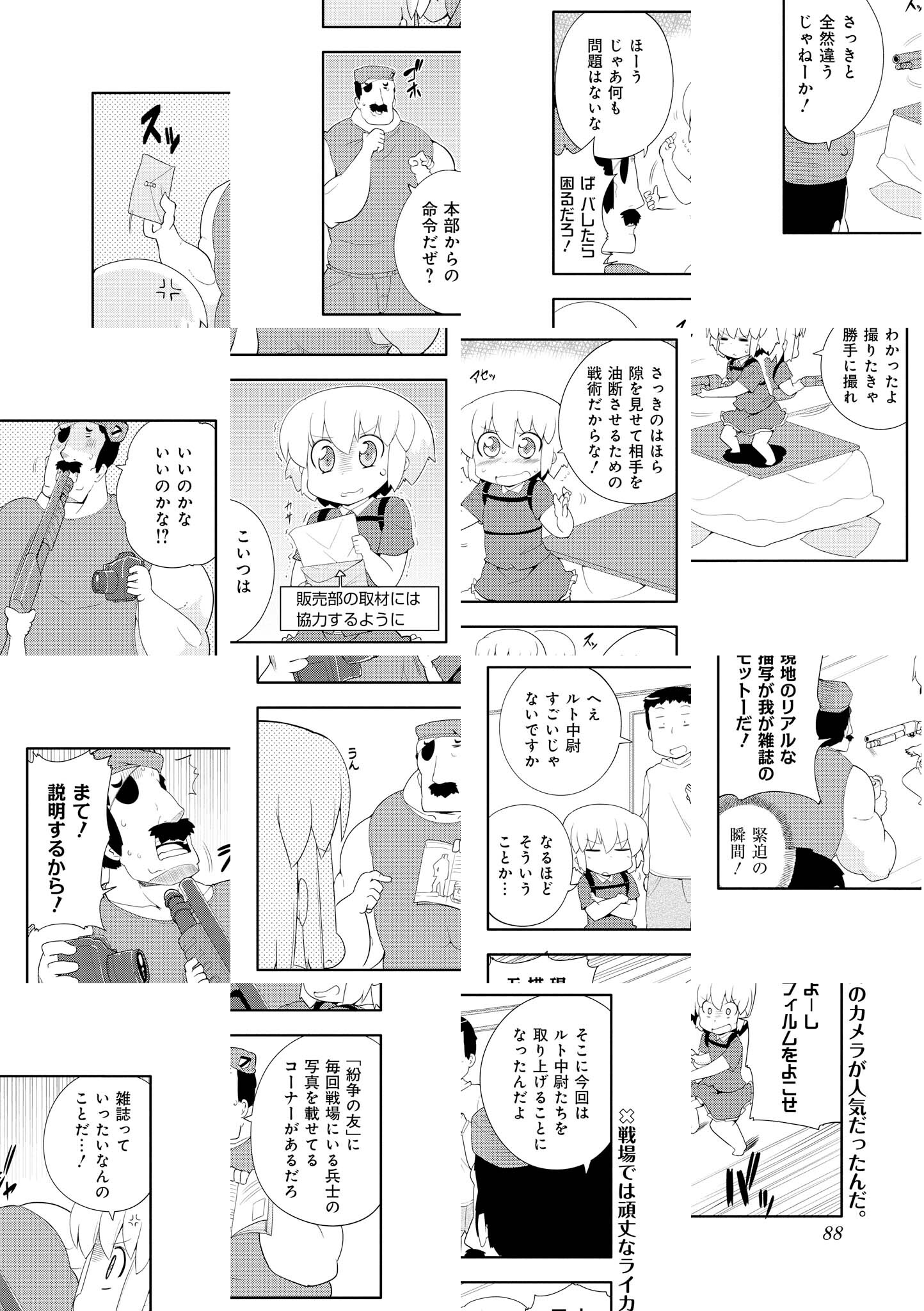 ぱっとしない生活を送っていた宗平のもとに、突然戦車で押しかけてきた女の子軍人・ルト中尉とハルカ少尉。こうして日常に戦車がある生活は始まった。そして、それを追うようにして現れた女の子敵国軍人・シャチーロフ。民家で火器を使用することにためらいがない彼女たちにいろんな意味でドキドキが止まりません。