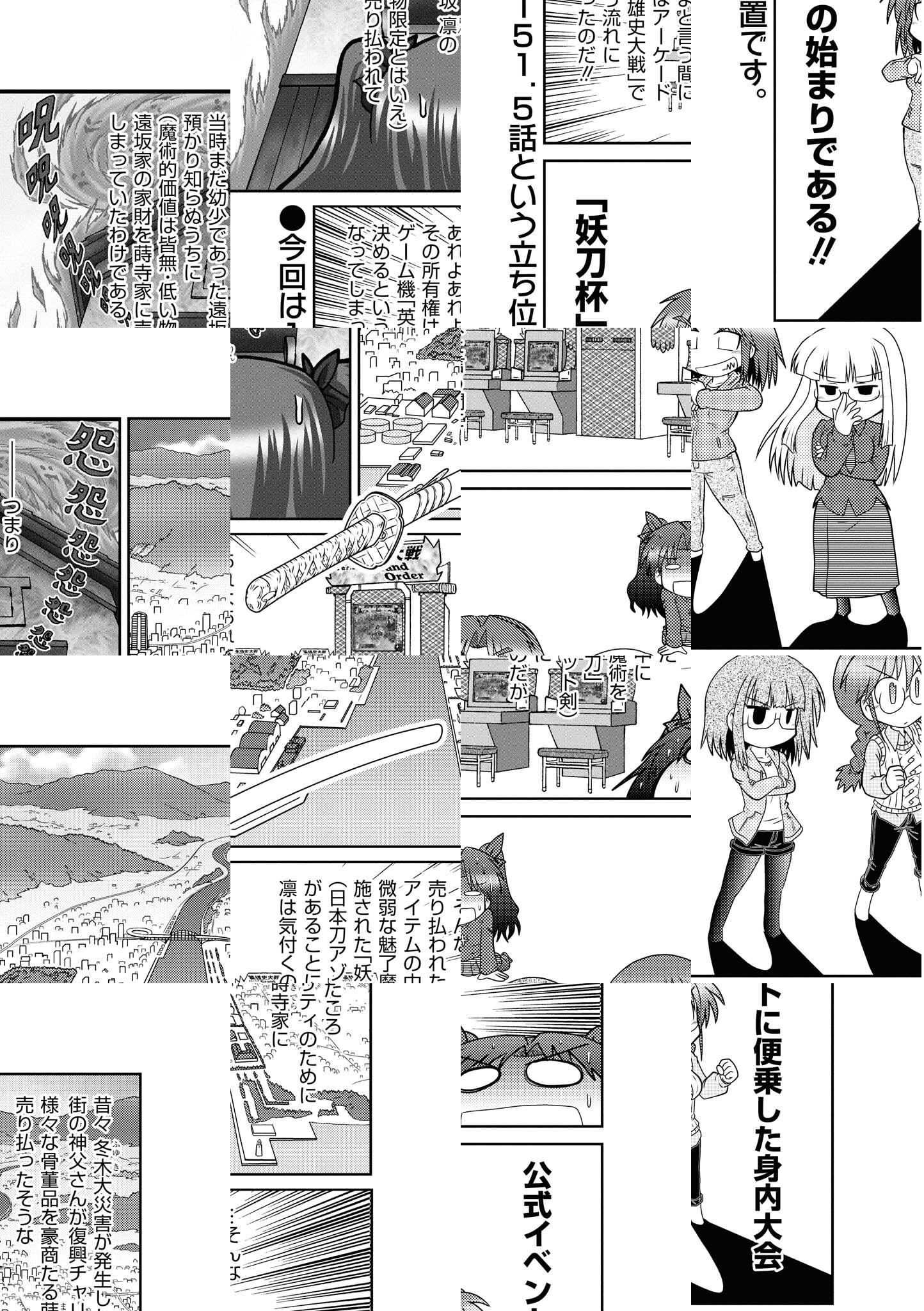 大人気ゲームソフト『Fate/stay night』と『Fate/hollow ataraxia』が4コマになって単行本登場!とはいっても主人公となるのは本編中に脇役どころかチョイ役でしかなかった冷静沈着な眼鏡っ娘・氷室鐘、穂群原の黒豹・蒔寺楓、未婚の良妻賢母・三枝由紀香らおよそ聖杯戦争とは全く無縁の面々。読んだ方はもしかしたら「え?キン肉マソ?ツグルイ?孤独のグノレメ?」と思われるかもしれませんが、いいえ、Fateです。