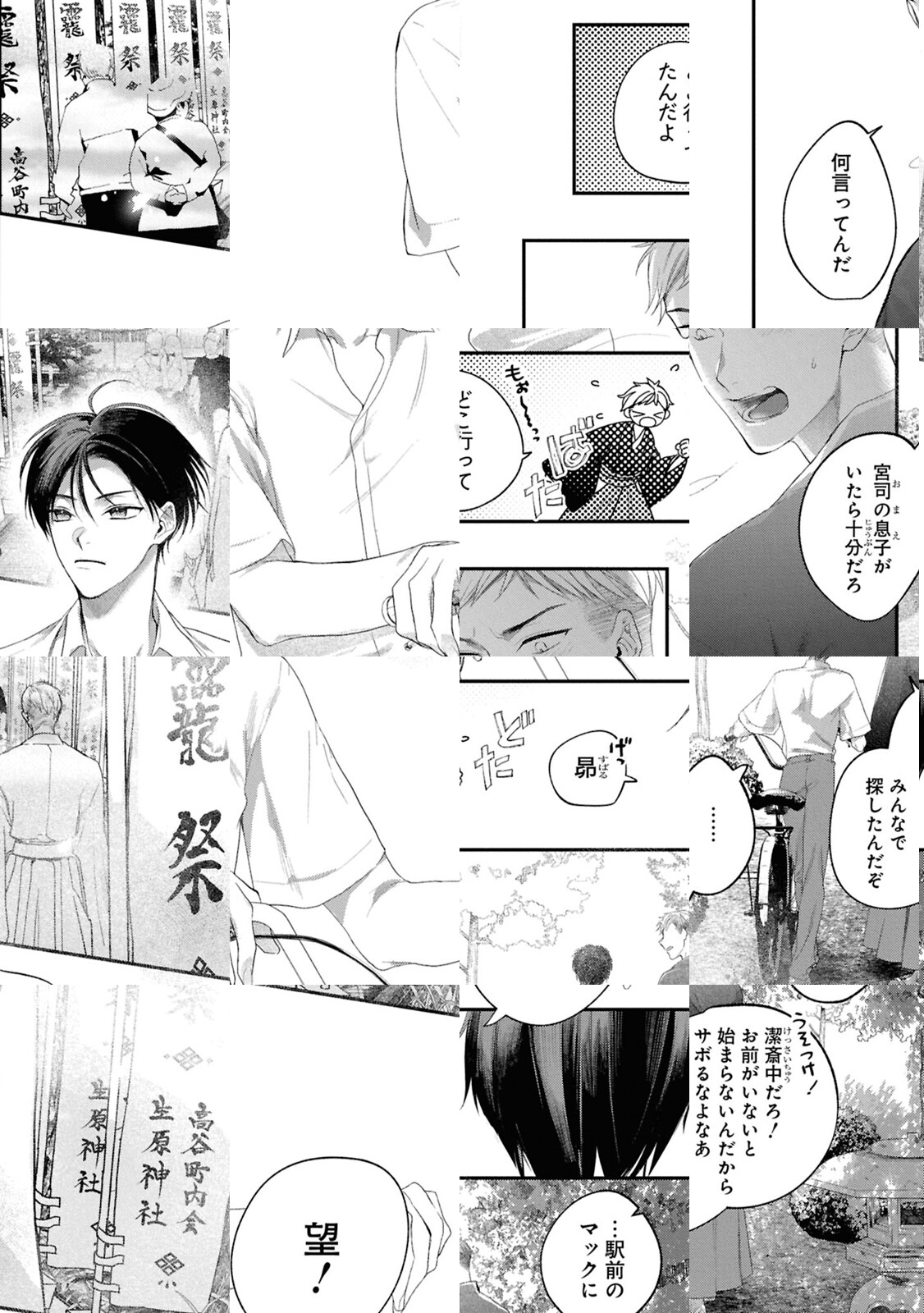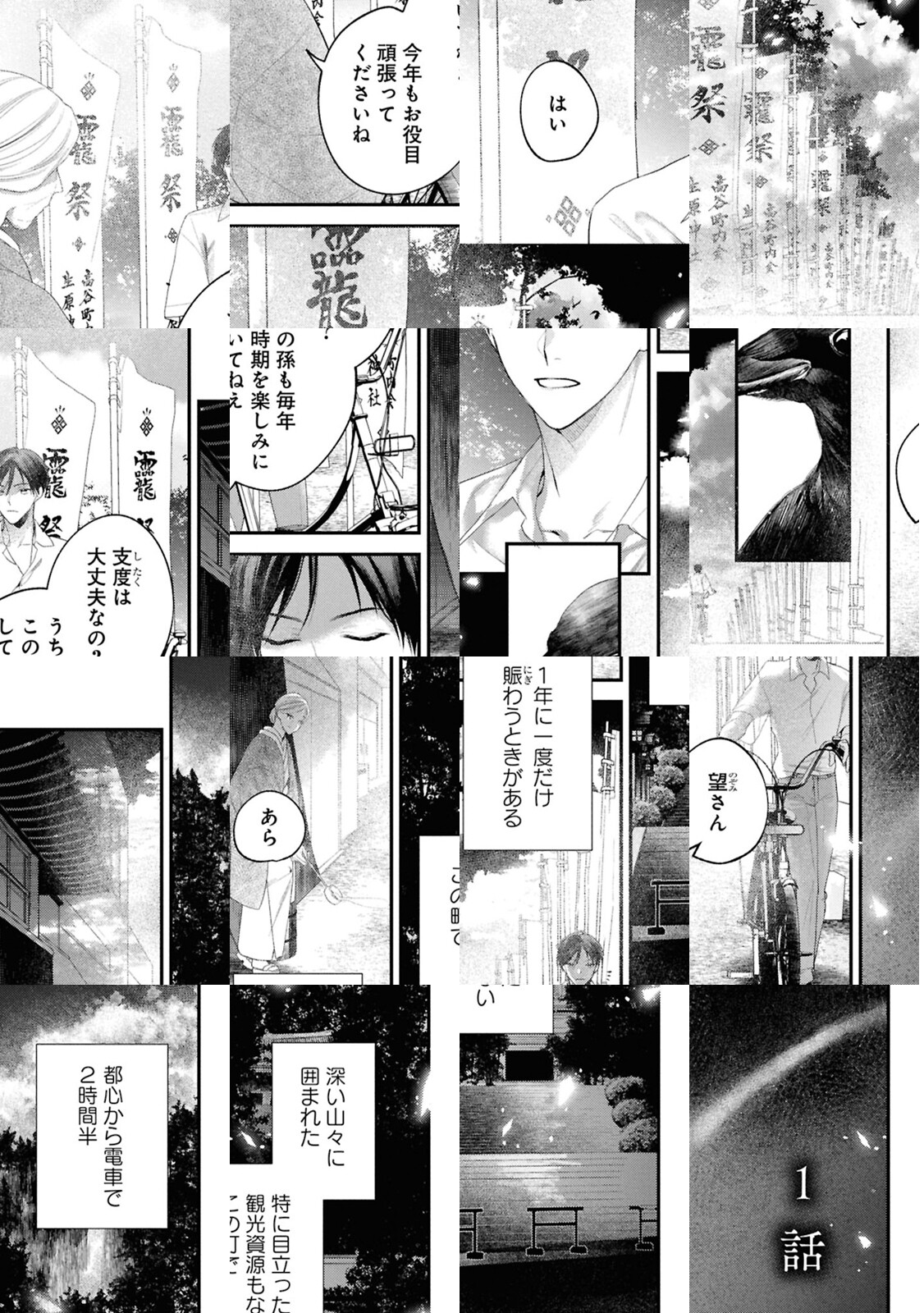 「迎えにきた」 宮司の直系として生まれた生原望は、町を賑わす1年に一度のお祭で龍神様の“花嫁役”を務めている。お役目も10年目を迎えた今年、いつも通り滞りなく行われるはずだった祭祀は、宮司と町の者たちにより“本当の”龍神様に花嫁を捧げる儀式に変えられてしまう。望は自分が龍神様の伴侶として育てられていたことと、10年前に亡くなった姉が自分の代わりに供物として捧げられていたことを知る。幼馴染みを人質に取られた望は、幽世に行くことを受け入れ、姉の行方を捜しに龍神・ミツハの御殿に向かうのだが――。